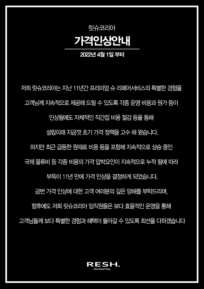 릿슈코리아 가격인상 안내